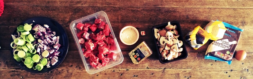 5 Preheat the oven to 200’C, fan 180’C, gas mark 6. Spoon the steak mixture into a 1.5L rectangular oven-proof dish. To make the pastry lid, roll out the pastry to the thickness of a £1 coin, and cut out a rectangle large enough to cover the dish. Reserve the trimmings.