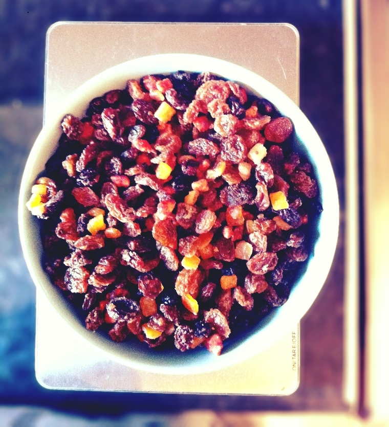 1 Pop the teabag in 500ml of freshly boiled water once brewed, remove the teabag. Put all the dried fruit in a bowl and pour the tea over and leave to soak for about an hour.