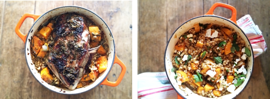 5 Remove the meat from the casserole and rest for 10 mins before carving. Stir the remaining mint through the squash and pearl barley, then serve with the sliced lamb.