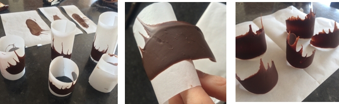 Bend the strips into rounds and staple to secure. Transfer to the freezer for 10 mins. Remove the parchment. Return to the freezer until ready to serve.
